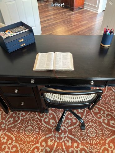 When I organize, I always ask two questions; does this bring you joy? And does everything in this space flow together? If it doesn't, I examine every detail to get that balanced look.